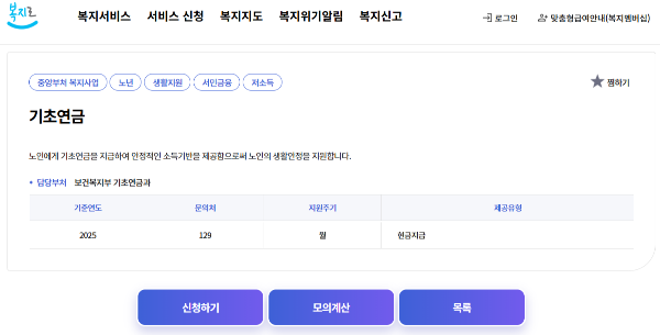 기초연금 신청 전 제공되는 모의계산 서비스는